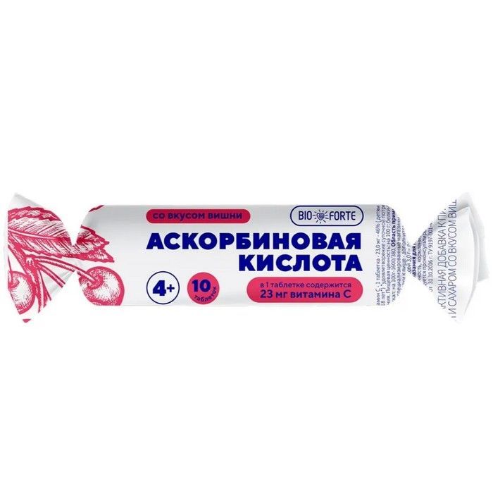 Аскорбиновая кислота Солнышко BioForte с сахаром и глюкозой таб. 3г №10 (вишня) Тигода-Фарм/Россия