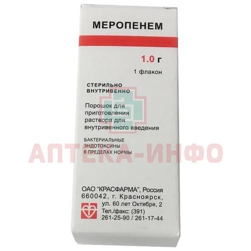 Меропенем фл.(пор. д/приг. р-ра д/в/в введ.) 1г №1 Красфарма
