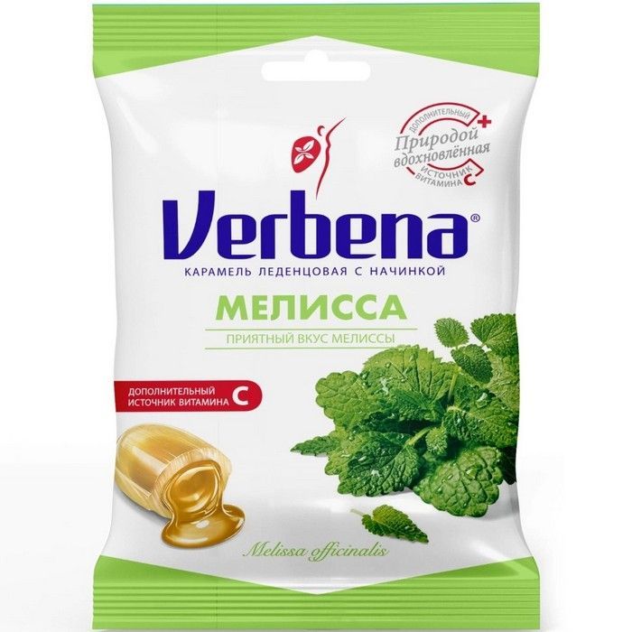 - VERBENA МЕЛИССА КАРАМЕЛЬ ЛЕДЕНЦОВАЯ С НАЧИНКОЙ - Биологически активная добавка (БАД) к пище - дополнительный источник витамина С.