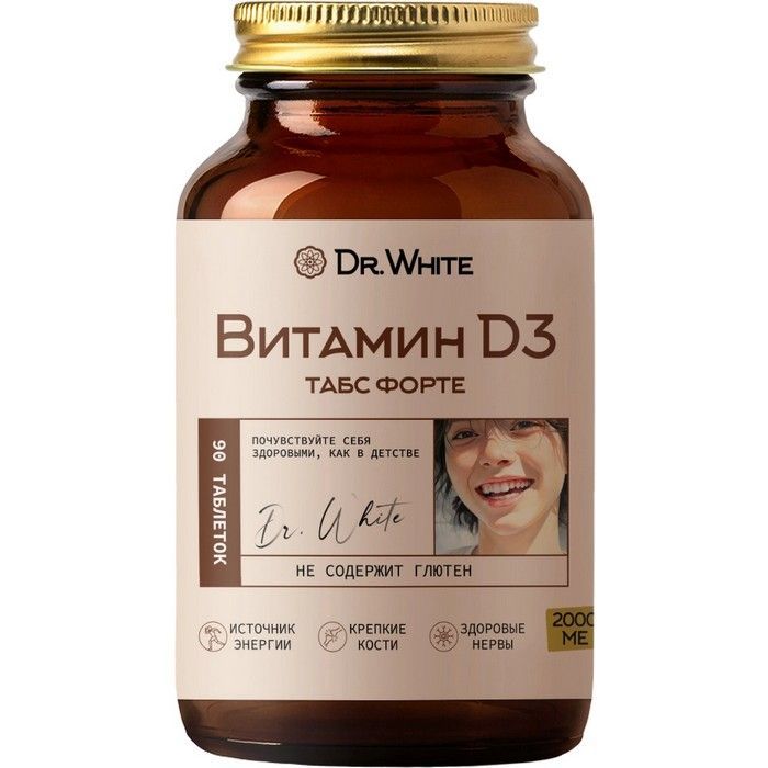 - DR WHITE ВИТАМИН D3 ТАБС ФОРТЕ - Биологически активная добавка (БАД) к пище, предназначенная для поддержания нормального уровня витамина D в организме.
