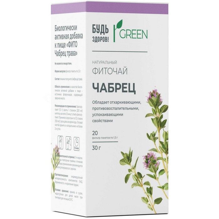 Будь здоров! Грин фиточай Фито Чабрец трава пак.-фильтр 1,5г №20 Здоровье/Россия