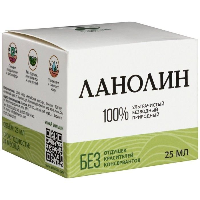 - АЛТАЙСКИЙ НЕКТАР ЛАНОЛИН 100% - натуральный ланолин высочайшей степени очистки, без отдушек, красителей и консервантов.