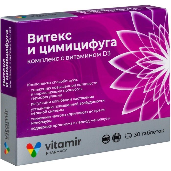 - ВИТЕКС И ЦИМИЦИФУГА КОМПЛЕКС С ВИТАМИНОМ D3 - Биологически активная добавка (БАД) к пище - Компоненты способствуют: