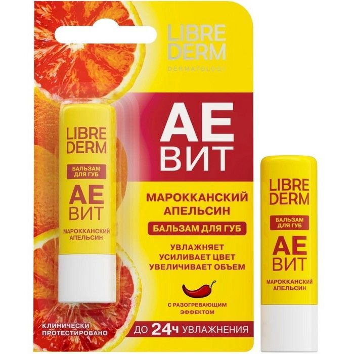 Аевит "Либридерм" (Librederm) бальзам д/губ Марокканский апельсин (увлажняет, усиливает цвет, увел. объем) Биофармлаб/Россия