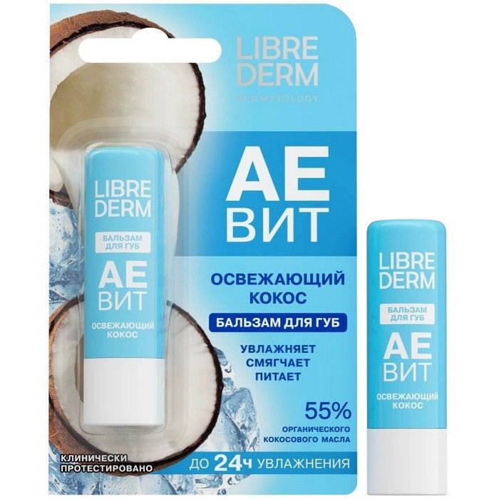 LIBREDERM - международный бренд косметики, который предлагает современные решения для любой дерматологической потребности.LIBREDERM АЕВИТ бальзам для губ Освежающий кокос.