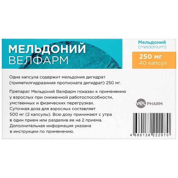 Мельдоний Велфарм капс. 250мг №40 Велфарм-М/Россия