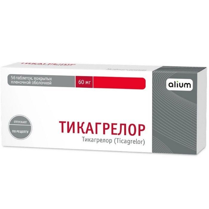 Тикагрелор таб. п/пл. об. 60мг №56 (14х4) Алиум/Россия
