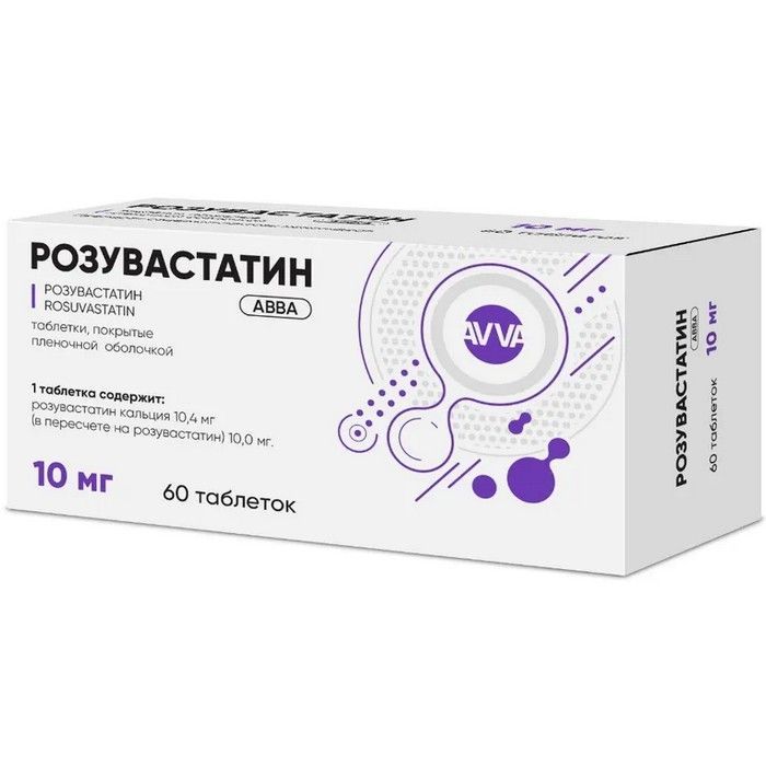 Розувастатин АВВА таб. п/пл. об. 10мг №60 АВВА РУС/Россия