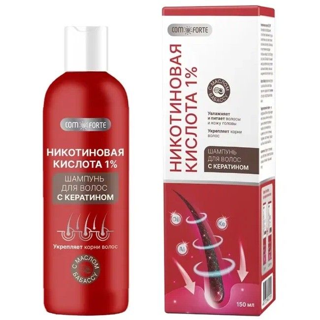 Шампунь ComForte Никотиновая кислота 1% с кератином д/волос 150мл Натуральные масла/Россия