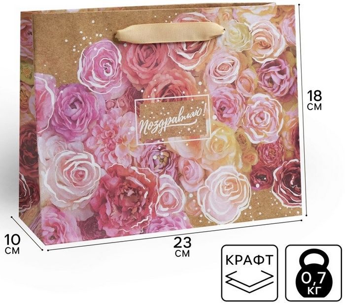 Пакет крафтовый "Цветочное настроение", 23х18х10см 1шт.