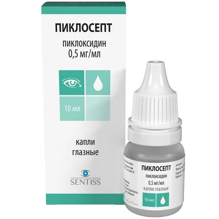 - Препарат Пиклосепт содержит действующее вещество пиклоксидин, относящееся к группе бигуанидинов. При местном применении пиклоксидин оказывает противомикробное и антисептическое действие при инфекциях глаз, вызванных бактериями, а также некоторыми вирусами и грибами