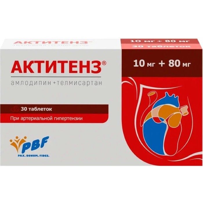 - Препарат АКТИТЕНЗ® содержит действующие вещества амлодипин и телмисартан и относится к группе «средства, действующие на ренин-ангиотензиновую систему; антагонисты рецепторов ангиотензина II, комбинации; антагонисты рецепторов ангиотензина II и блокаторы кальциевых каналов». Оба действующих вещества в составе препарата помогают снижать высокое артериальное давление.