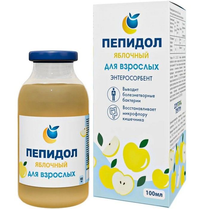 ПЕПИДОЛ яблочный - антибактериальный энтеросорбент. Его основа – яблочный пектин. Это универсальный препарат растительного происхождения. Обладает способностью избирательно уничтожать всю патогенную и условно-патогенную кишечную флору, не повреждая нормальную флору кишечника.