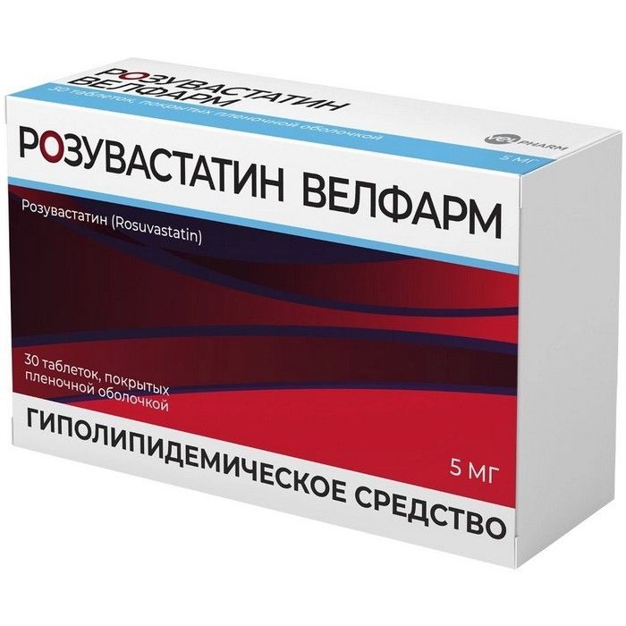 Розувастатин Велфарм таб. п/пл. об. 5мг №30 Велфарм-М/Россия