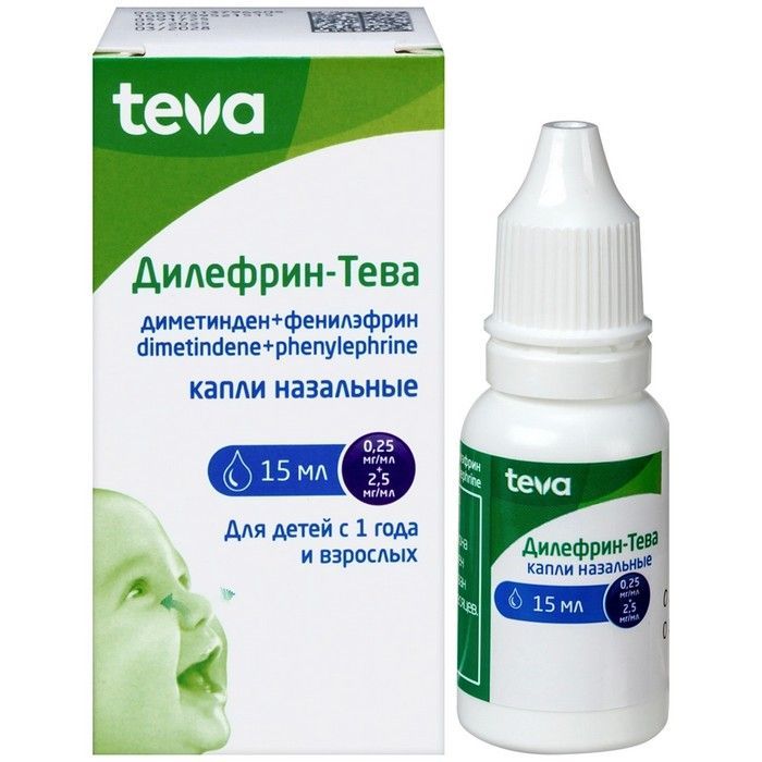 Что из себя представляет препарат Дилефрин-Тева, и для чего его применяютДилефрин-Тева содержит два действующих вещества: диметинден и фенилэфрин.Препарат относится к группе противоаллергических комбинированных средств и оказывает умеренное сосудосуживающее действие, устраняя отек слизистой оболочки носа и его придаточных пазух.