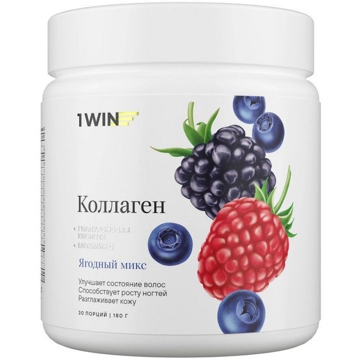 1WIN Коллаген + гиалуроновая кислота + вит. С пор. 180г (ягодный микс) банка ВинЛаб Нутришин/Россия
