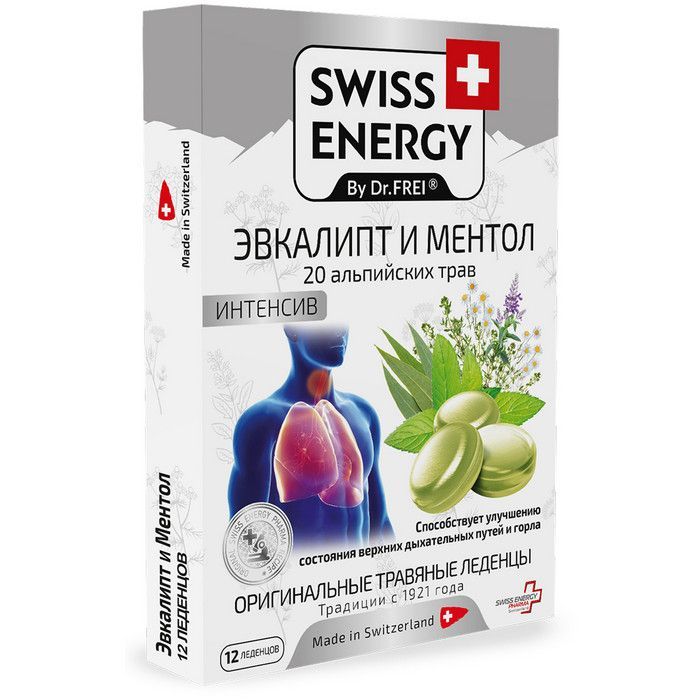 Свисс Энерджи леденцы 20 альпийских трав+эвкалипт+ментол №12 Domaco Dr.med.Aufdermaur/Швейцария