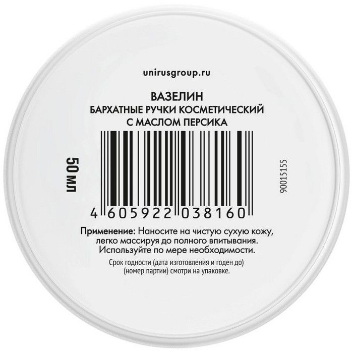 Вазелин косметический БАРХАТНЫЕ РУЧКИ с маслом персика 50мл Юнилевер Русь/Арнест Юнирусь/Россия