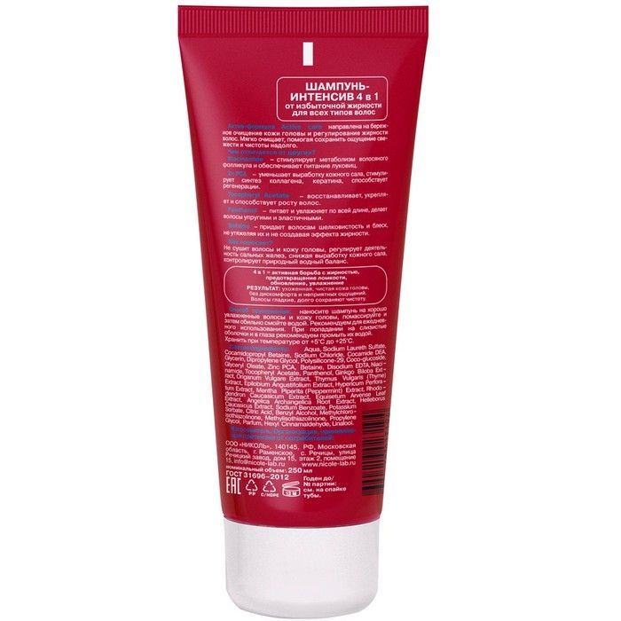 - Aqua, Sodium Laureth Sulfate, Cocamidopropyl Betaine, Sodium Chloride, Cocamide DEA, Glycerin, Dipropylene Glycol, Polysilicone-29, Coco-glucoside, Glyceryl Oleate, Zinc PCA, Betaine, Disodium EDTA, Niacinamide, Tocopheryl Acetate, Panthenol, Ginkgo Biloba Extract, Origanum Vulgare Extract, Thymus Vulgaris (Thyme) Extract, Epilobium Angustifolium Extract, Hypericum Perforatum Extract, Mentha Piperita (Peppermint) Extract, Rhododendron Caucasicum Extract, Equisetum Arvense Leaf Extract, Angelica Archangelica Root Extract, Helleborus Сaucasicus Extract, Sodium Benzoate, Potassium Sorbate, Citric Acid, Benzyl Alcohol, Methylchloroisothiazolinone, Methylisothiazolinone, Propylene Glycol, Parfum, Hexyl Сinnamaldehyde, Linalool.