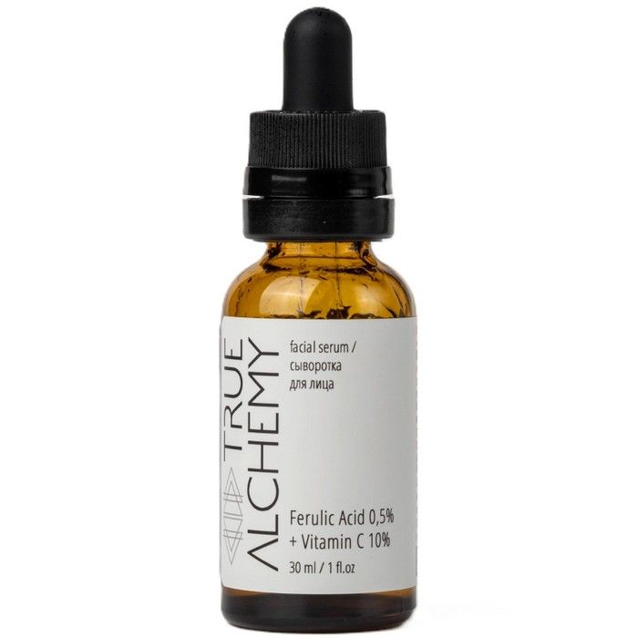 - TRUE ALCHEMY СЫВОРОТКА ДЛЯ ЛИЦА FERULIC ACID 0,5%+VITAMIN C 10% - концентрированная сыворотка восстанавливает эпидермис, предупреждает появление пигментных пятен, уменьшает выраженность морщин, возвращает коже упругость и сияние.