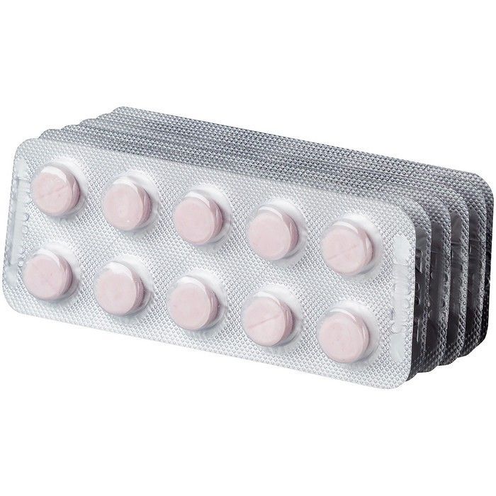 - Круглые плоскоцилиндрические таблетки от белого до светло-розового цвета или светло-розового с желтоватым оттенком цвета с вкраплениями более интенсивного оттенка, с фаской и риской с одной стороны.