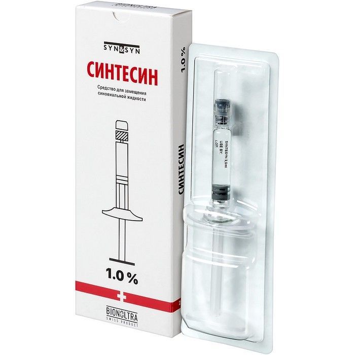 - Средство для замещения синовиальной жидкости 1% по 2 мл в шприц - 1 шприц и 1 игла инъекционные одноразовые стерильные вместе с инструкцией по применению в пачке из картона.