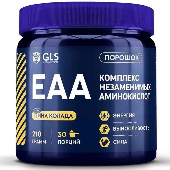 Биологически активная добавка к пище «Комплекс незаменимых аминокислот (ЕАА) GLS» со вкусом пина колада. Свидетельство о государственной регистрации: № RU. 77. 99. 22. 003. R. 001196. 05. 25 от 20. 05. 2025 г
