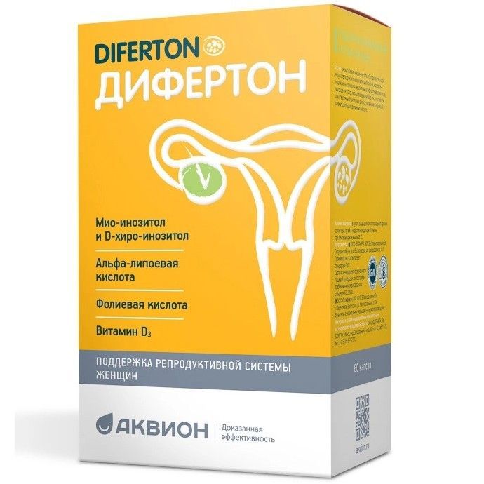Дифертон - биологически активная добавка к пище для поддержки репродуктивной системы женщин. Прием 2 капсул обеспечит поступление: