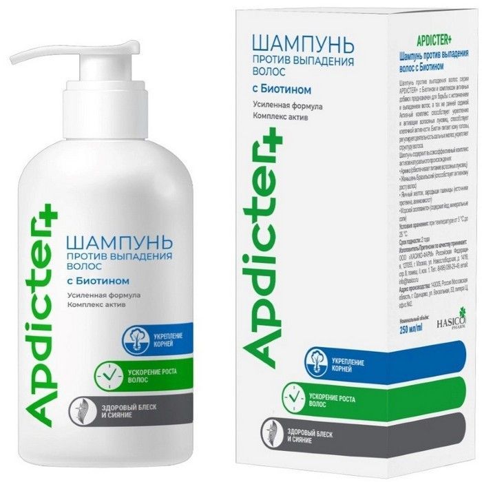 Шампунь APDICTER+ против выпадения волос с биотином 250мл Хасико-Фарм/Россия