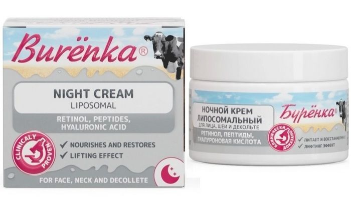 ЛОШАДИНАЯ СИЛА БУРЕНКА КРЕМ ДЛЯ ЛИЦА/ШЕИ/ЗОНЫ ДЕКОЛЬТЕ НОЧНОЙ ЛИПОСОМАЛЬНЫЙ - для всех типов кожи.Внешний вид и свойства: Однородная белая масса с фантазийным цветочным ароматом.Возраст: с 18 лет