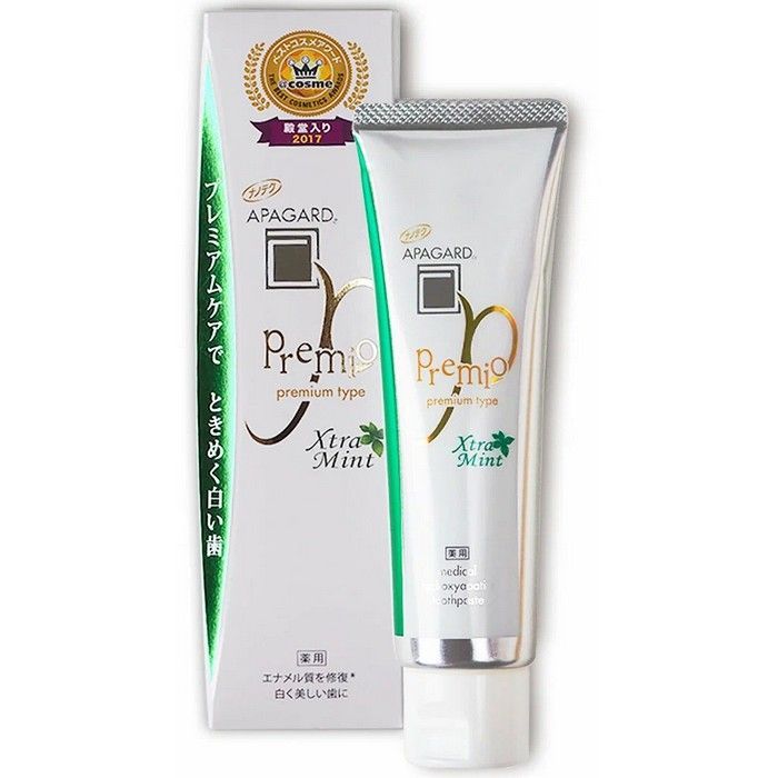 - ОТБЕЛИВАЮЩАЯ ЗУБНАЯ ПАСТА APAGARD PREMIO X-MINT - содержит инновационный запатентованный компонент от японских ученых SANGI - Медицинский Нано-Гидроксиапатит (NANO™), идентичный гидроксиапатиту, который входит в состав костей и зубов, и составляет 96% от эмали зуба.