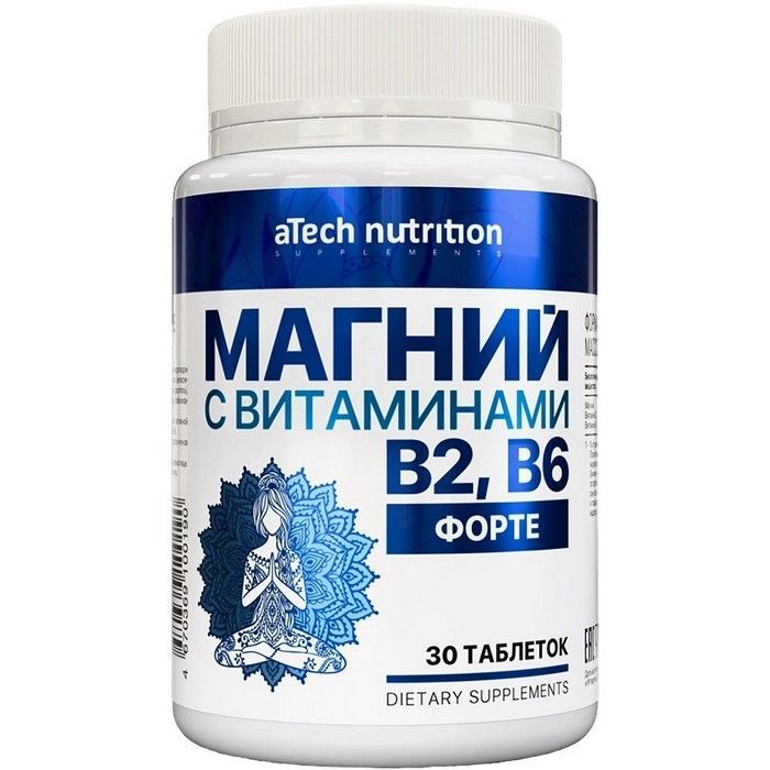 «МАГНИЙ ФОРТЕ С ВИТАМИНАМИ В2 и В6» aTech Nutrition — комплекс, направленный на поддержку нервной системы, правильный энергообмен и работу мышц.