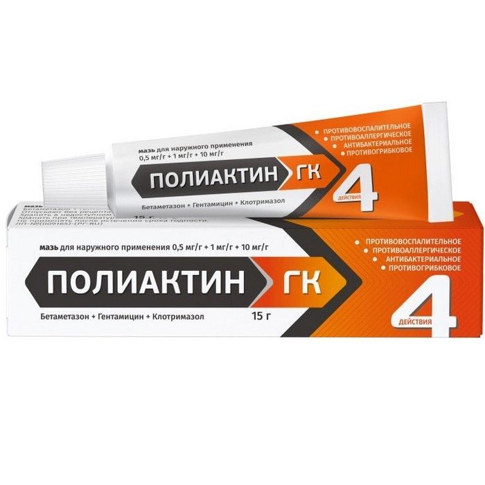 - Препарат ПОЛИАКТИН ГК, показан к применению у взрослых и детей в возрасте от 2 до 18 лет по показаниям: дерматозы, осложненные инфекциями, вызванными чувствительными к препарату возбудителями, или при подозрении на такие инфекции, в том числе - простой и аллергический дерматиты, атопический дерматит