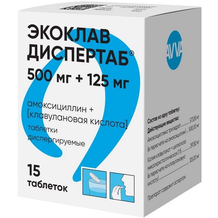 Экоклав Диспертаб таб. дисперг. 500мг+125мг №15 банка АВВА РУС/Россия