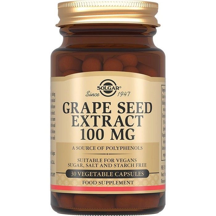 - Для производства продукта Solgar «Экстракт виноградных косточек» используется только тщательно отобранный виноград хорошего качества, что обеспечивает высокое содержание полифенолов в каждой капсуле (90 мг).