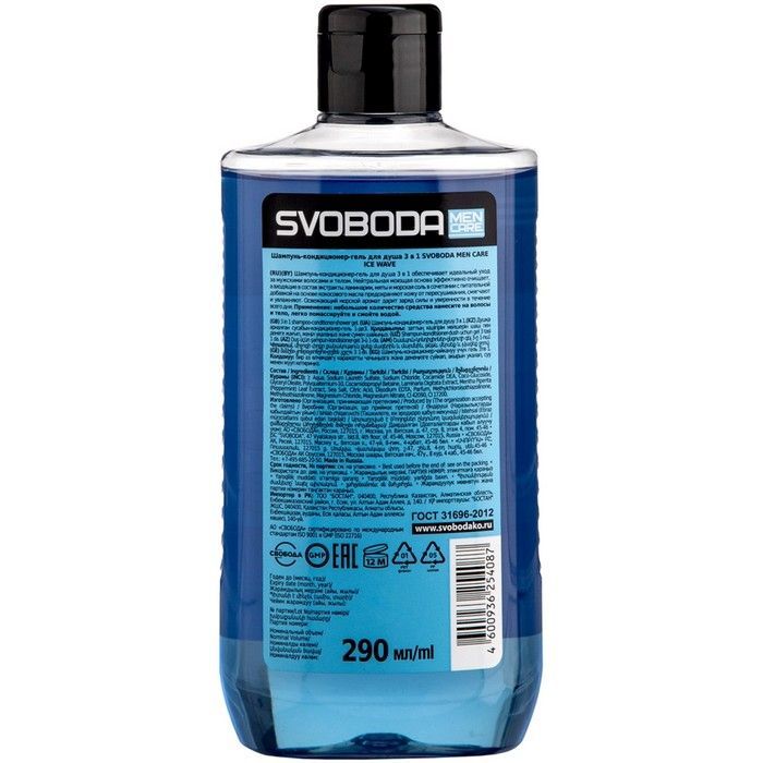 - Шампунь-кондиционер-гель для душа 3 в 1 SVOBODA MEN CARE IСE WAVE - для ухода за волосами и телом.
