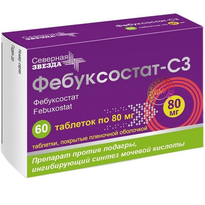 Фебуксостат-СЗ таб. п/пл. об. 80мг №60 Северная звезда/Россия