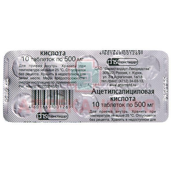 Ацетилсалициловая кислота - 500 мг.