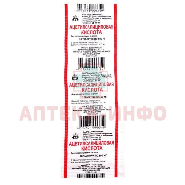 Ацетилсалициловая кислота таб. 500мг №10 уп.конт.яч. Дальхимфарм