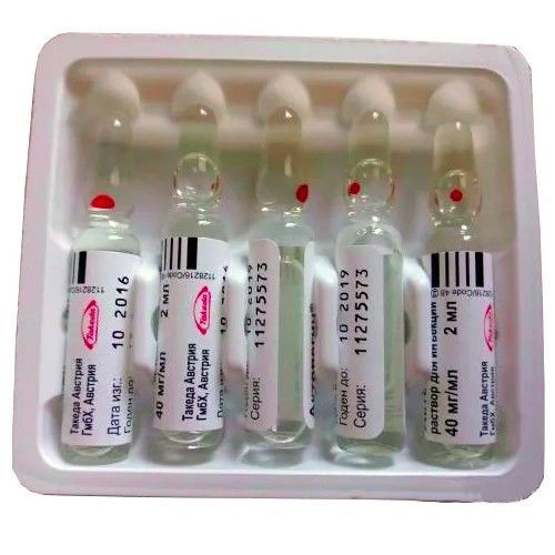 - Раствор для инъекций, 40 мг/мл-- по 2 мл в ампуле - 5 шт в уп.
