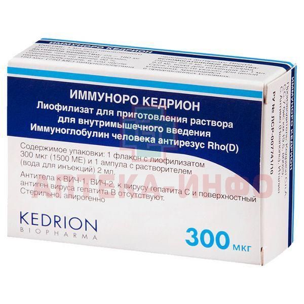 Иммуноро Кедрион фл.(лиоф. д/приг. р-ра д/в/м введ.) 0,3 мг №1 + р-ль Kedrion/Италия