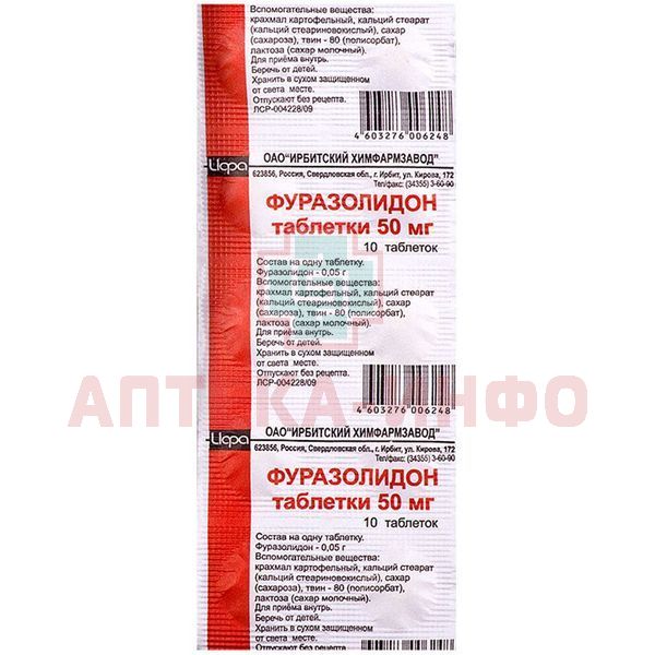 Фуразолидон таб. 50мг №10 Ирбитский ХФЗ