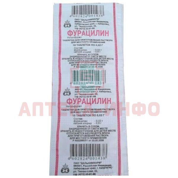 Фурацилин таб. д/р-ра наружн. 20мг №10 Дальхимфарм
