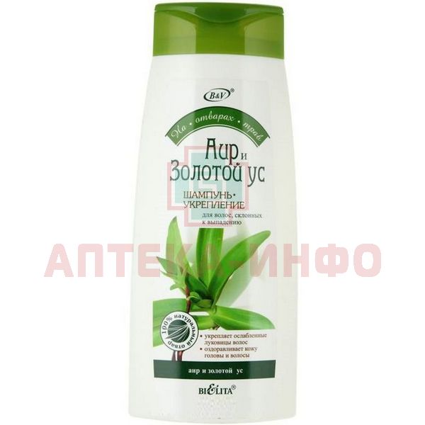 Шампунь НА ОТВАРАХ ТРАВ "Укрепление" с эктр. аира и золотого уса п/выпадения 480мл Белита/Беларусь