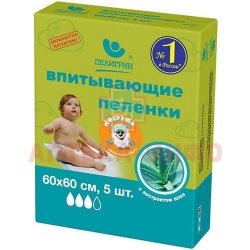 Пеленка ПЕЛИГРИН впитывающие 60 х 60см №5 с экстр. алоэ Пелигрин