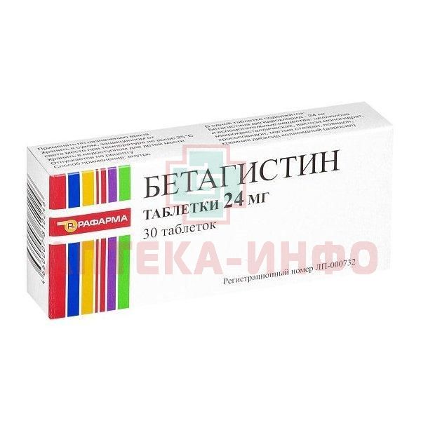 Бетагистин таб. 24мг №30 уп.конт.яч. Рафарма