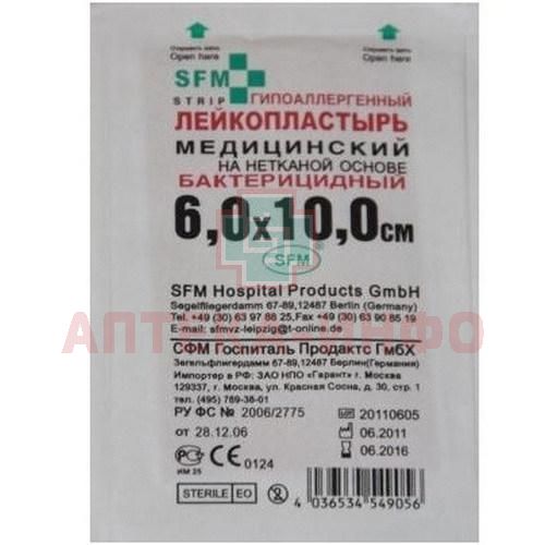 Лейкопластырь бактерицидный SFM STRIP 6см х 10cм (неткан. основа) (SFM Hospital Products/Германия)