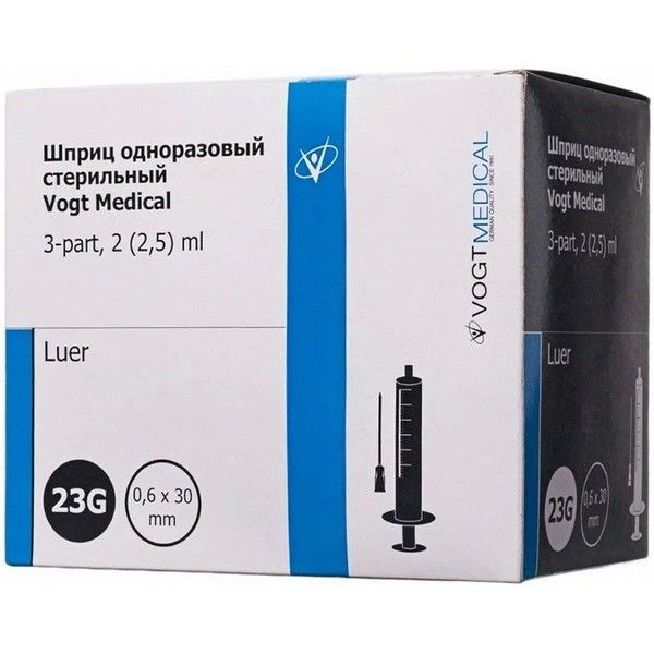 Шприц одноразовый с иглой 3мл (3-х комп.) G23 №100 Vogt Medical/Германия