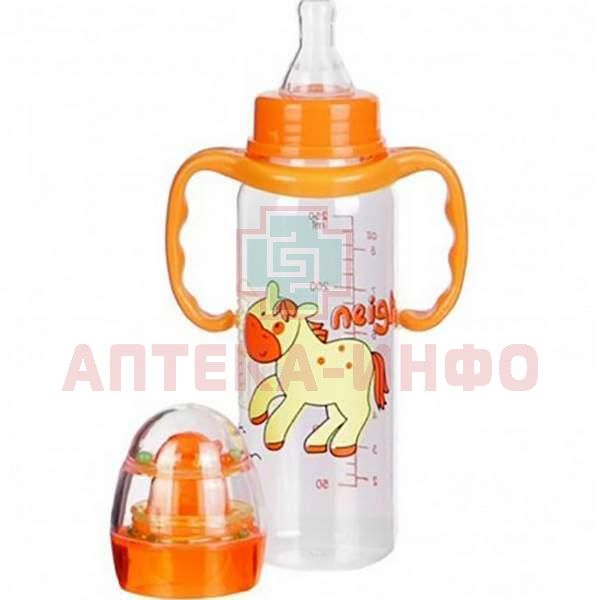 Бутылочка детская БУСИНКА пластик. с силикон. соской и погремушкой 250мл (арт. 1114) Guangzhou Holdings Sinok/Китай