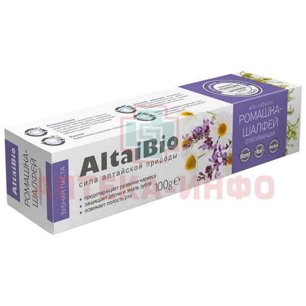 Зубная паста ALTAIBIO отбеливающая антитабак Ромашка и Шалфей 100г Две линии/Россия